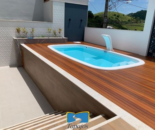 Um deck de madeira para uma piscina de fibra pode transformar completamente a área de lazer, proporcionando um ambiente elegante, aconchegante e funcional. A combinação da madeira com a fibra cria um contraste visual que é, ao mesmo tempo, moderno e acolhedor. Além disso, a madeira é um material natural que se adapta bem ao clima tropical, oferecendo uma superfície antiderrapante, o que é essencial para a segurança ao redor da piscina.